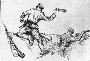 Вървят под стяга с тигъра ужасен бойците на Ривниз, герой прекрасен.
